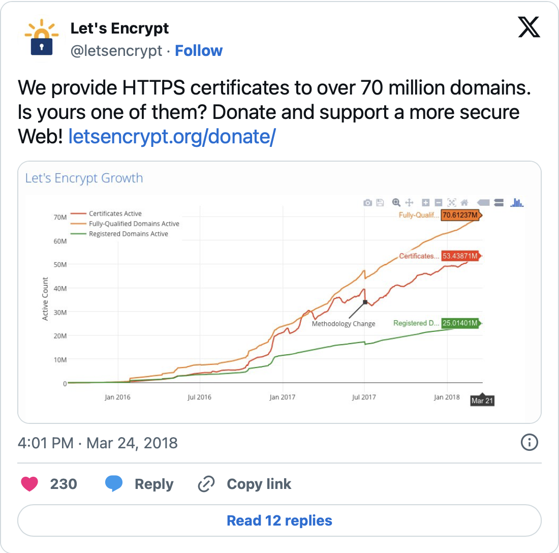 If you are not sure if Let’s Encrypt is the right CA for you: Have a look at this tweet: